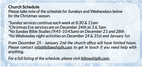 You can always find the latest information of what is happening in the Sunday Bulletin.