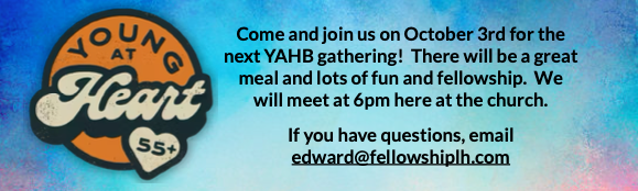We are excited to share that we have a monthly get together for 55+ Senior Adults and you are invited to join us at 6pm for dinner and a time of community.